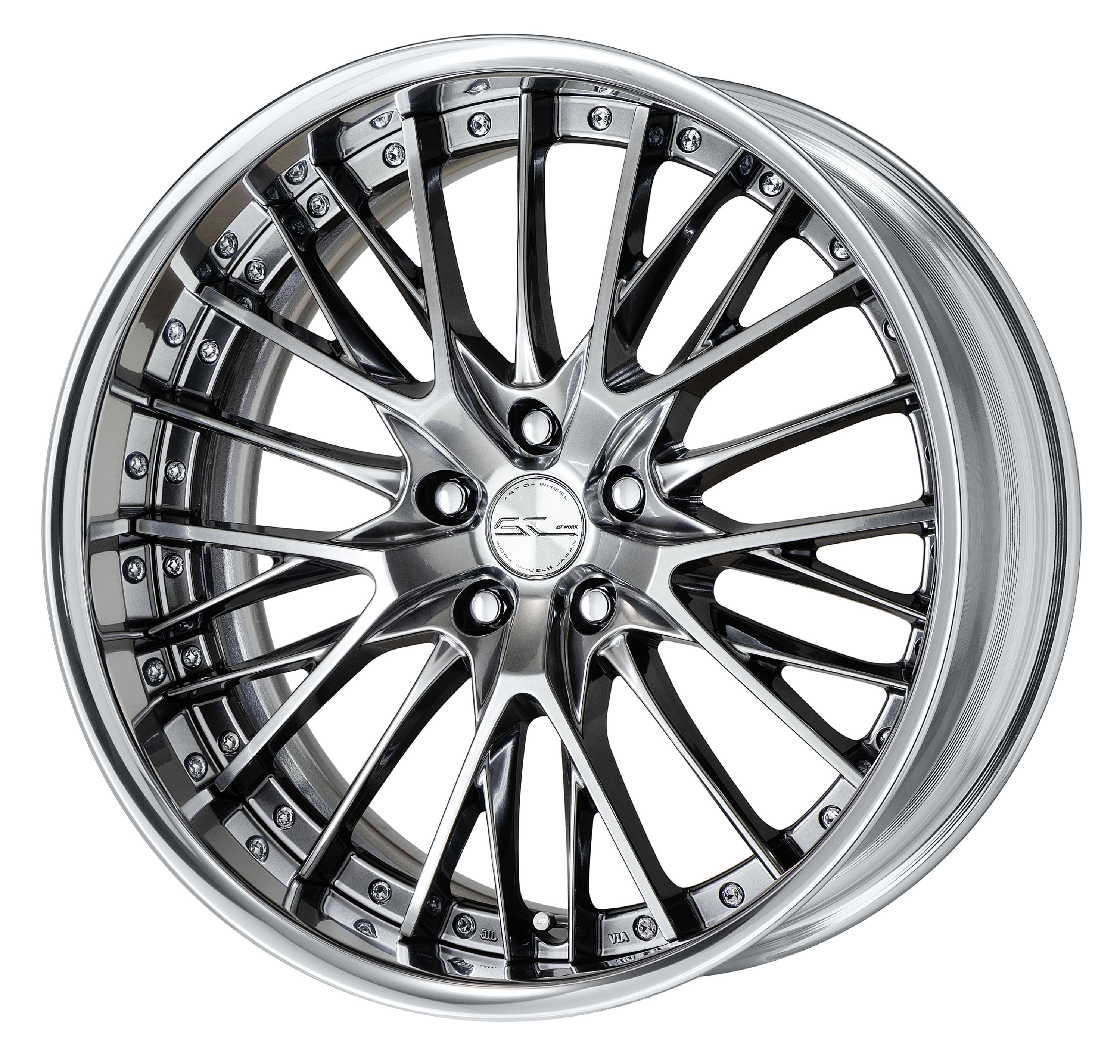 グリミットシルバーカラーによるSG2デザインは、各パートの⽴体感がより強調されるようになっています。各パートがブラックカットクリアとは異なりシルエットがはっきり強調される事で複雑な造形を映し出します。更にオーバーディスクデザイン部のオープンメッシュスポーク部は、P.C.D.付近へ向けての勾配角とセンター周りの複雑な造形と相まって幾何学的⽴体造形となっています。