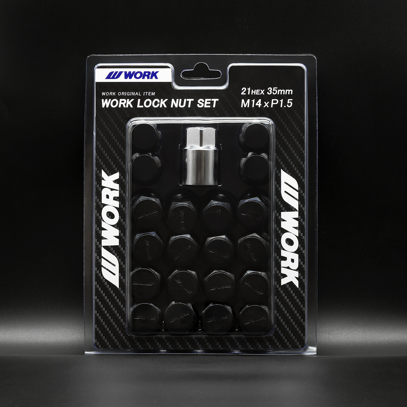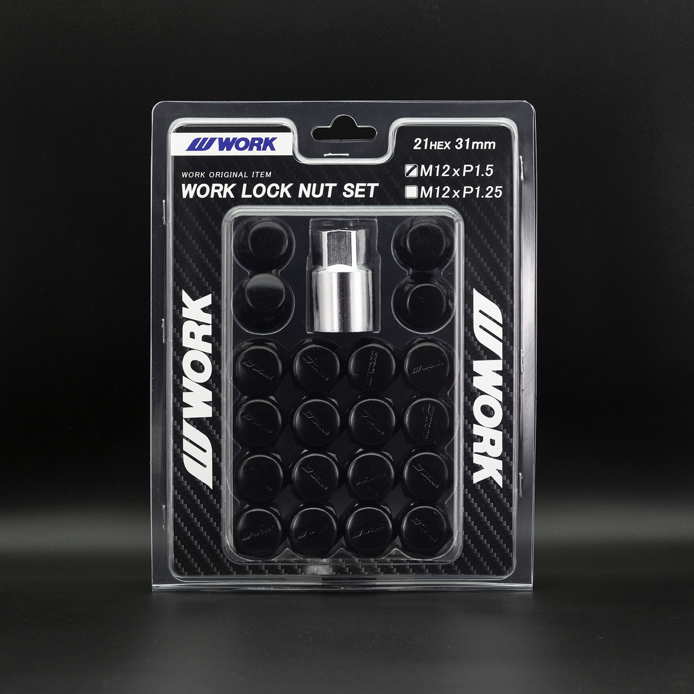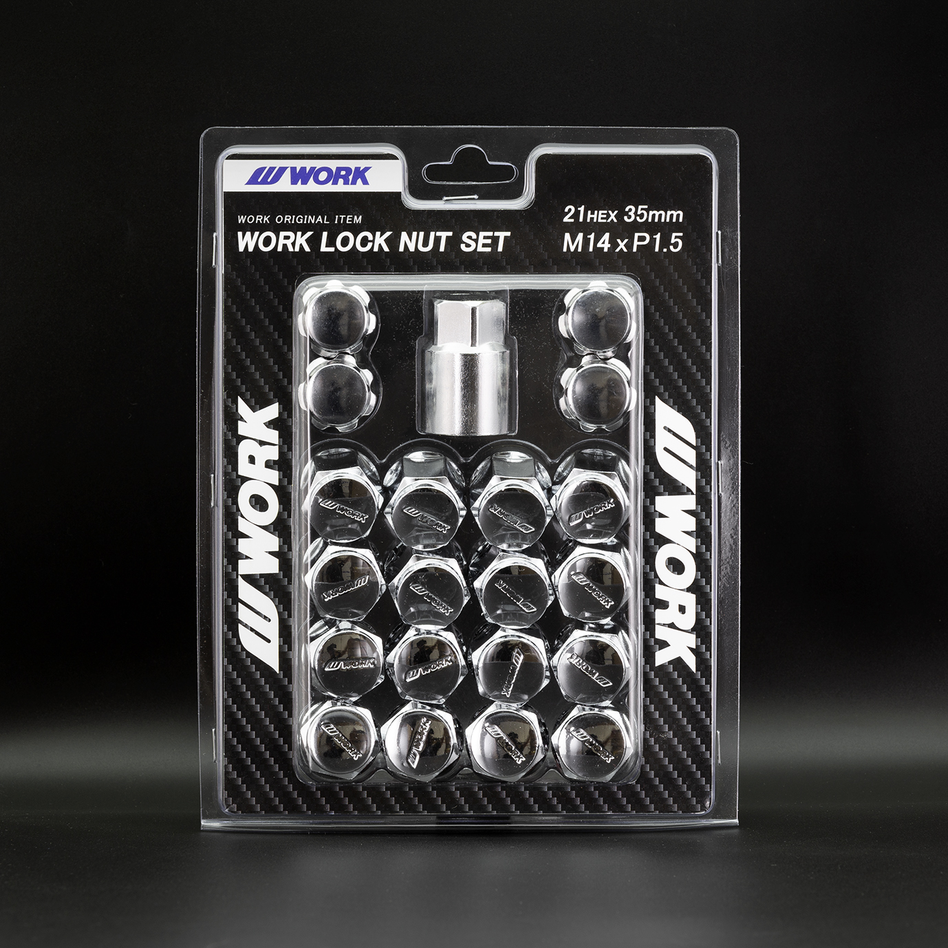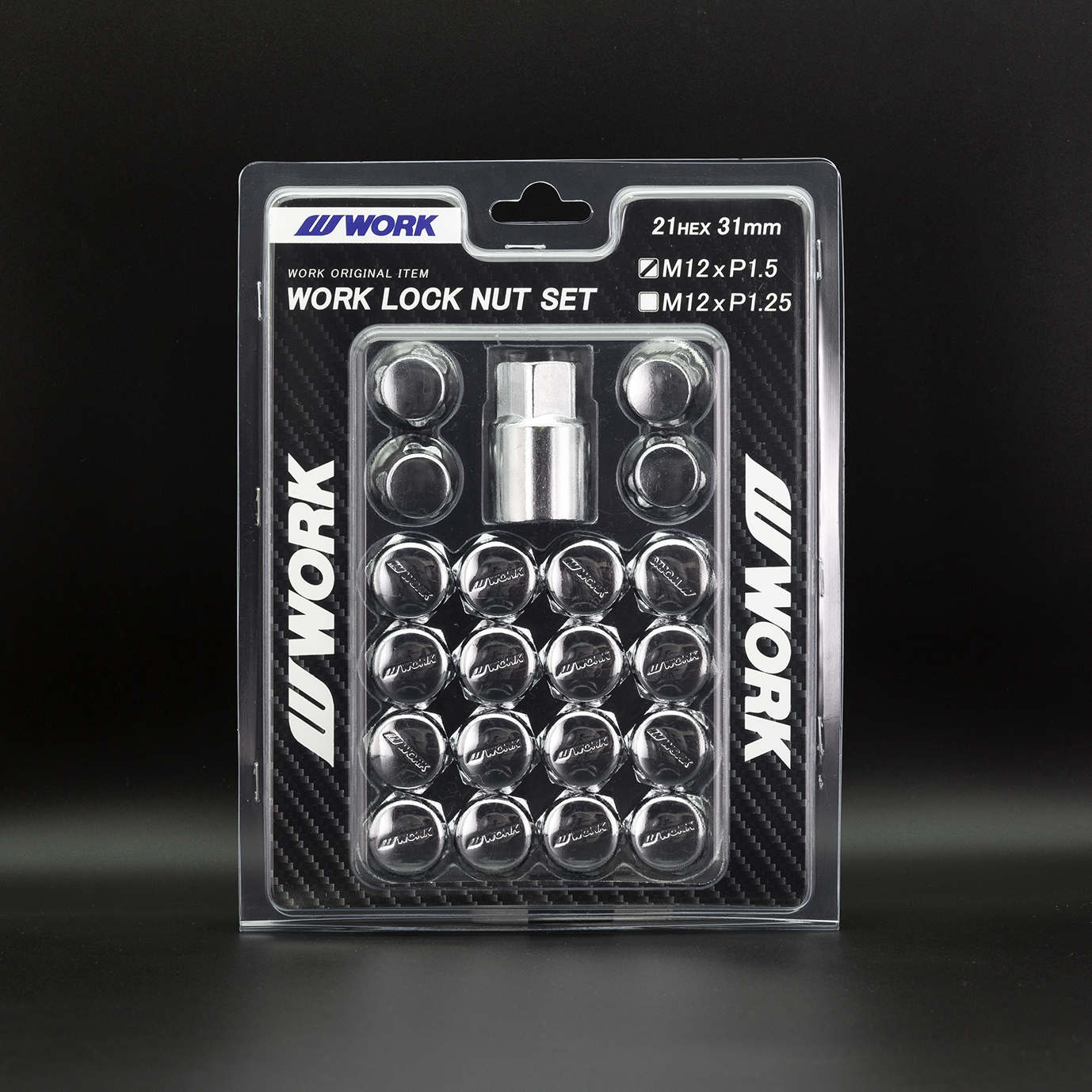 WORK LOCK NUT SET This set is crafted from durable steel. These specially designed lock nuts prevent tightening or loosening with a standard torque wrench, helping to prevent theft. Available in chrome or black.