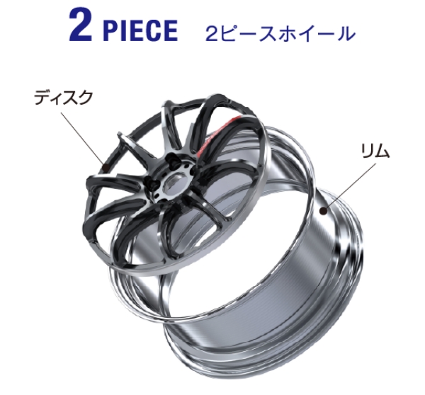 リム部とディスク部を別々に成形した構造で、最近の2ピースホイールのほとんどが溶接接合されています。