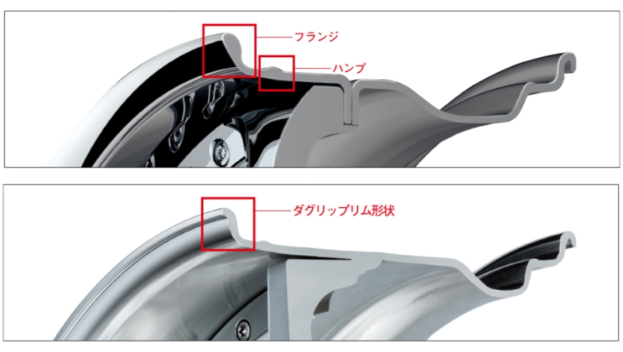 ※ハンプ:トラブル発生時にタイヤ内の空気圧が低下した場合でもタイヤビードがリムからずり落ちにくい形状。